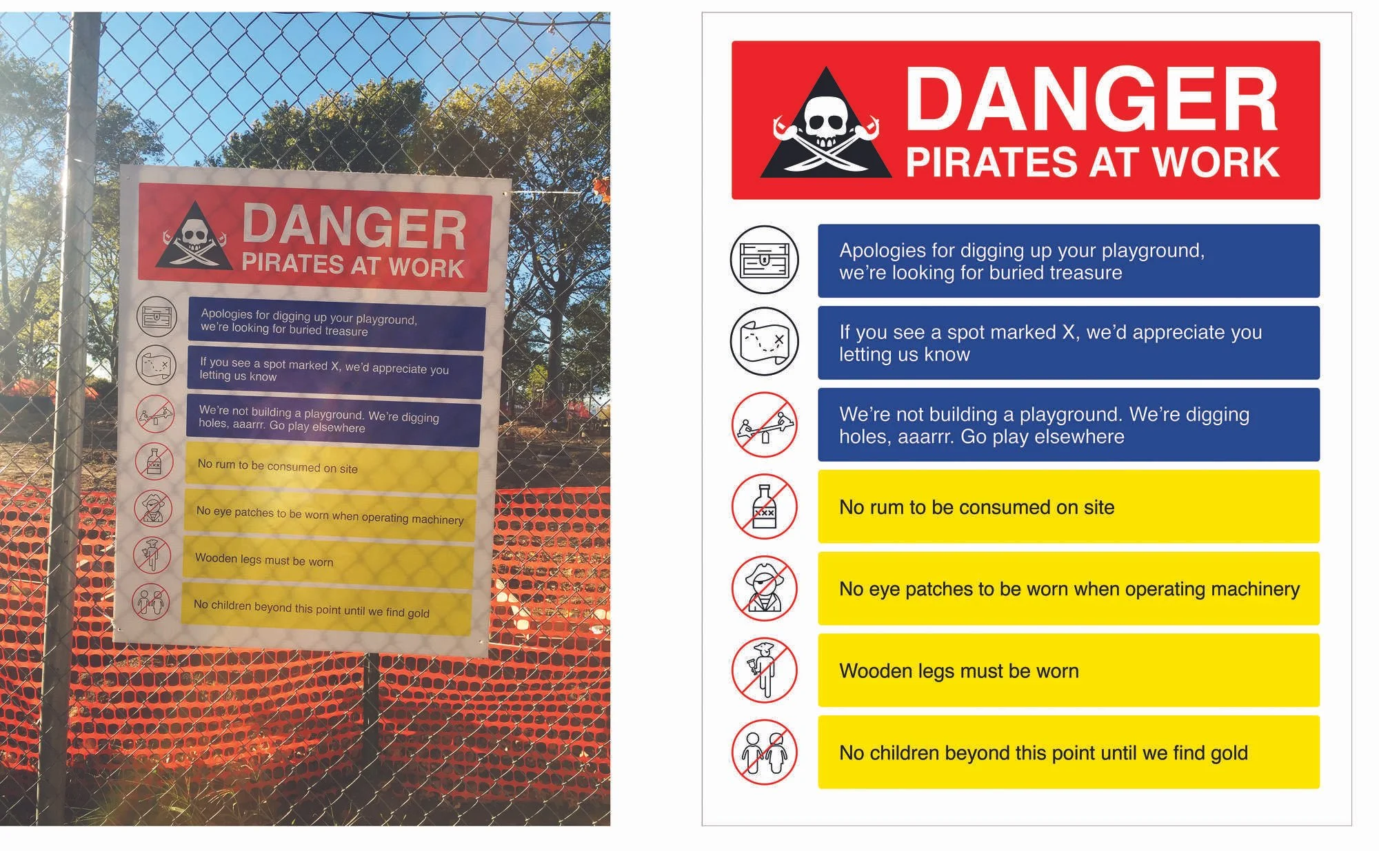 I didn't complain (I'm British). I subverted a construction site sign, making out that the workers are in fact pirates digging for buried treasure (and have no intention of building a new playground).